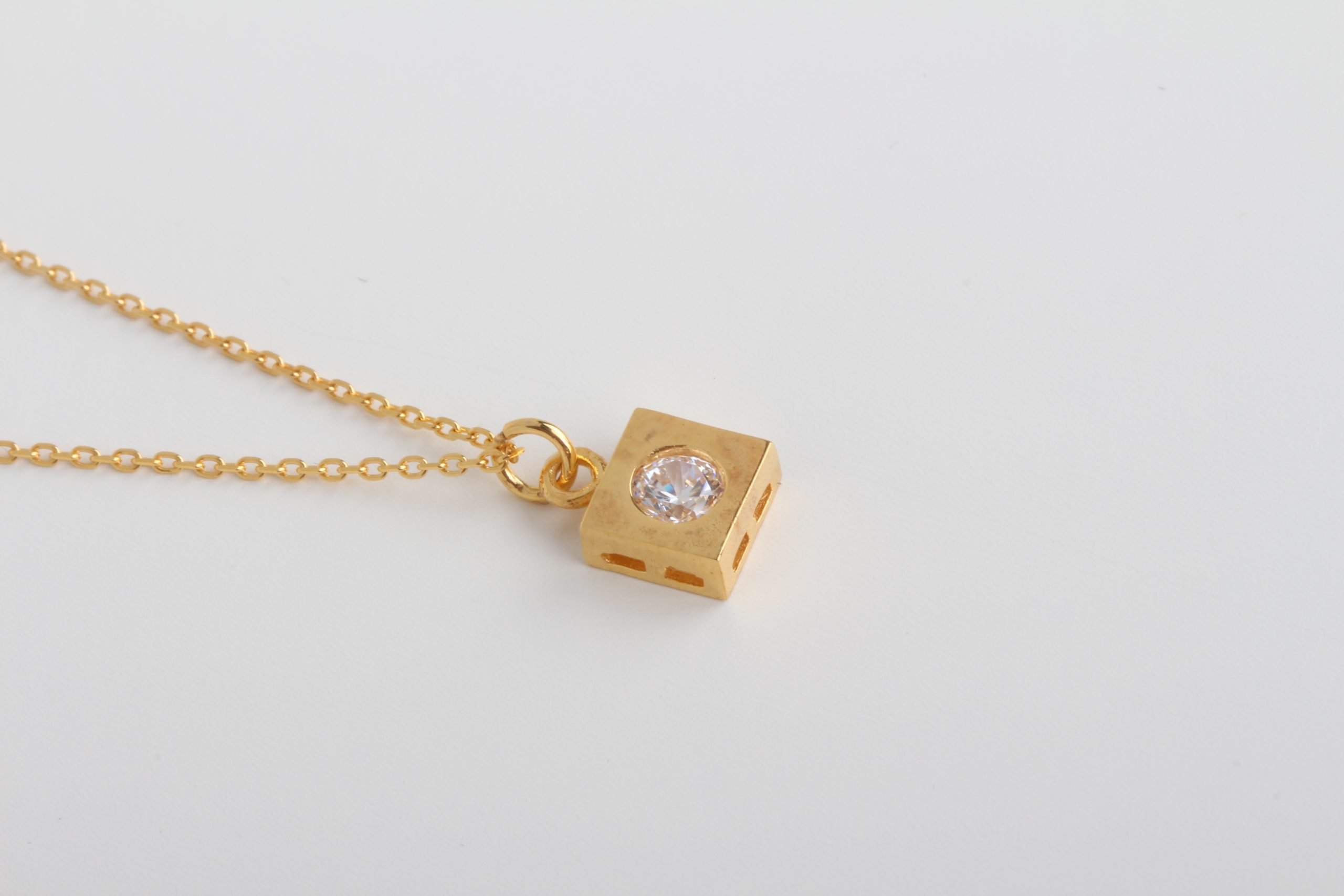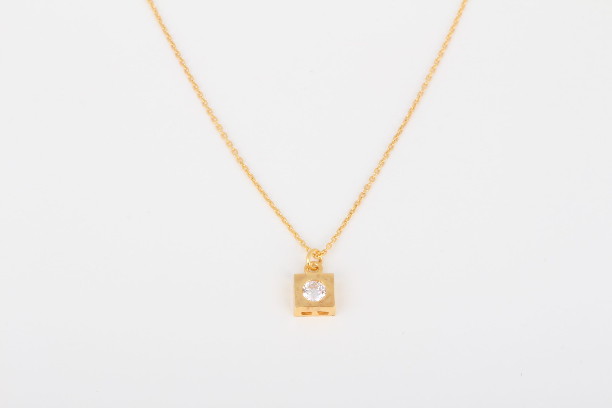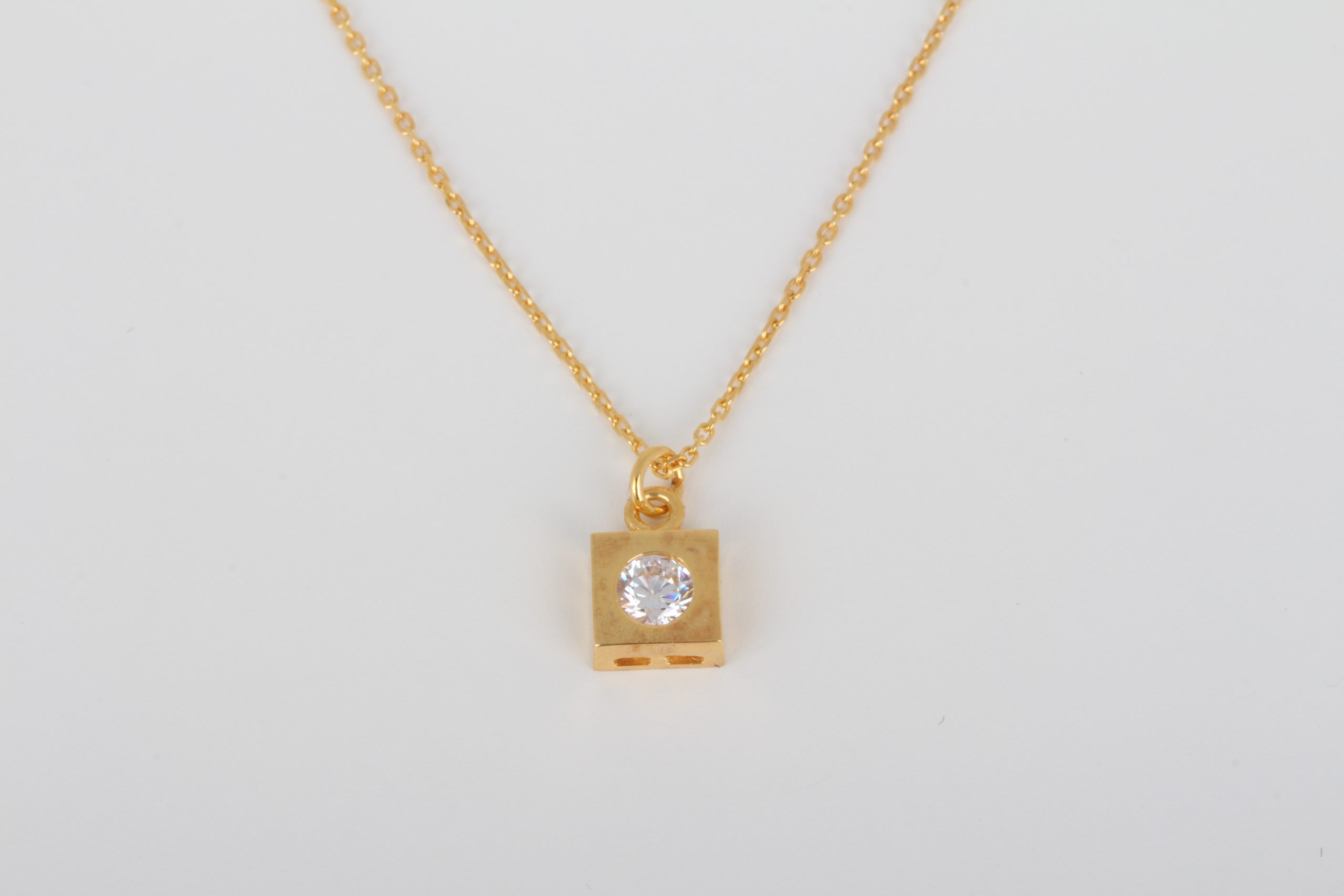 Pure 21k gold squared necklace with white zirconia
