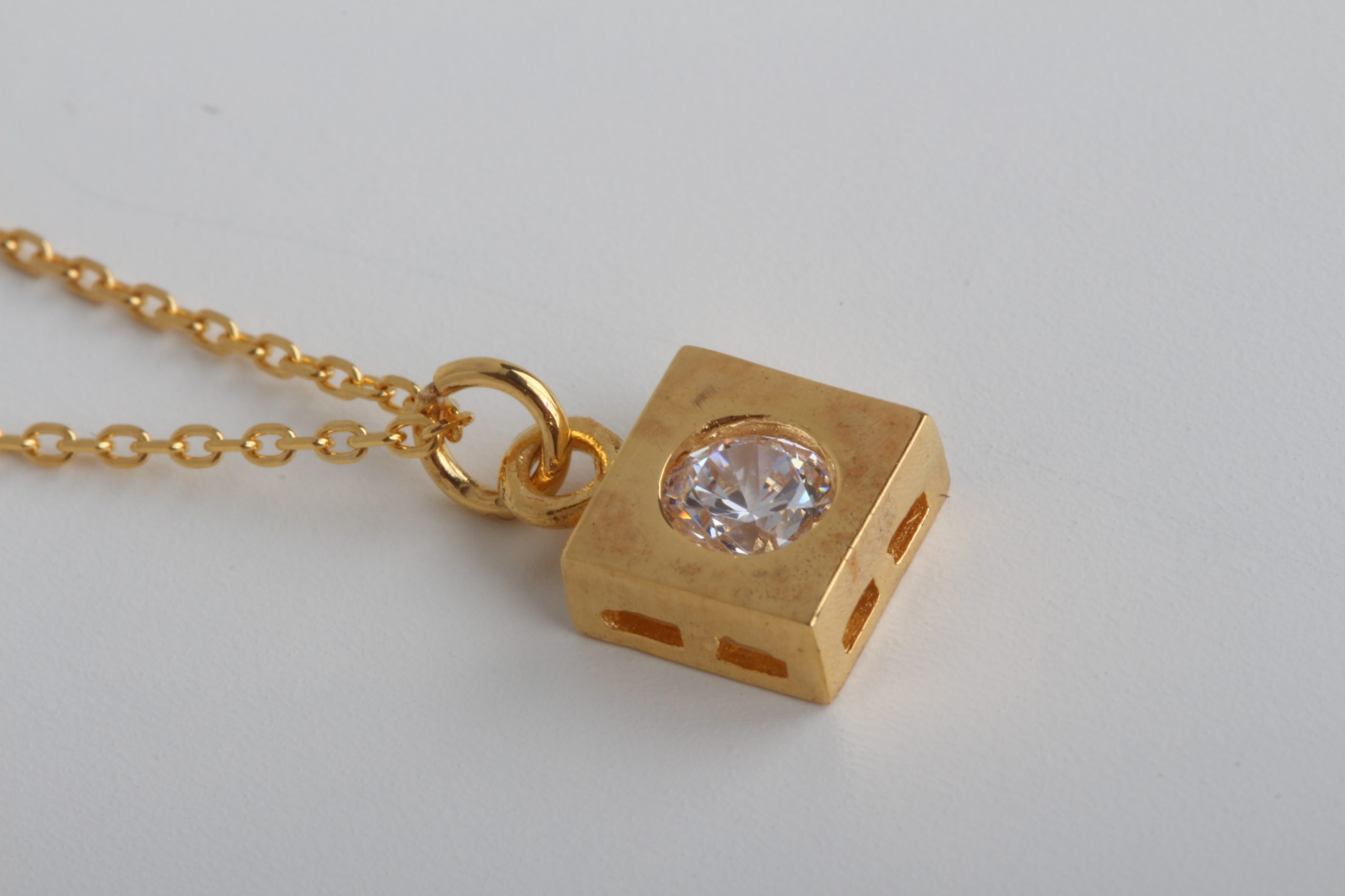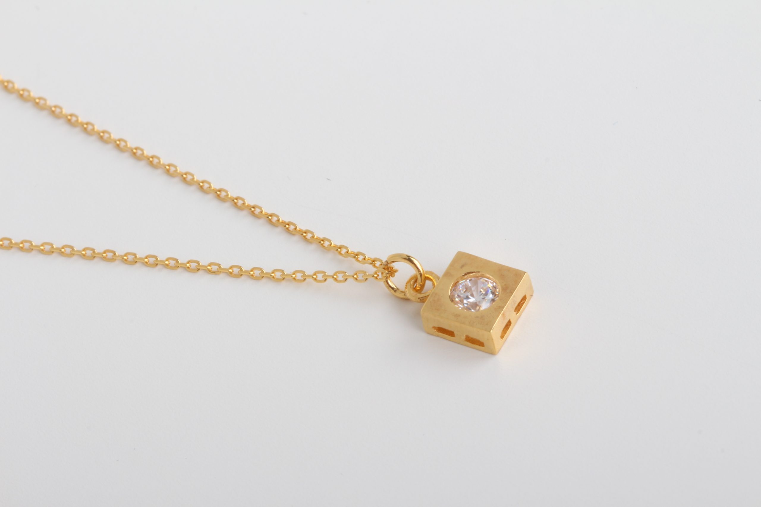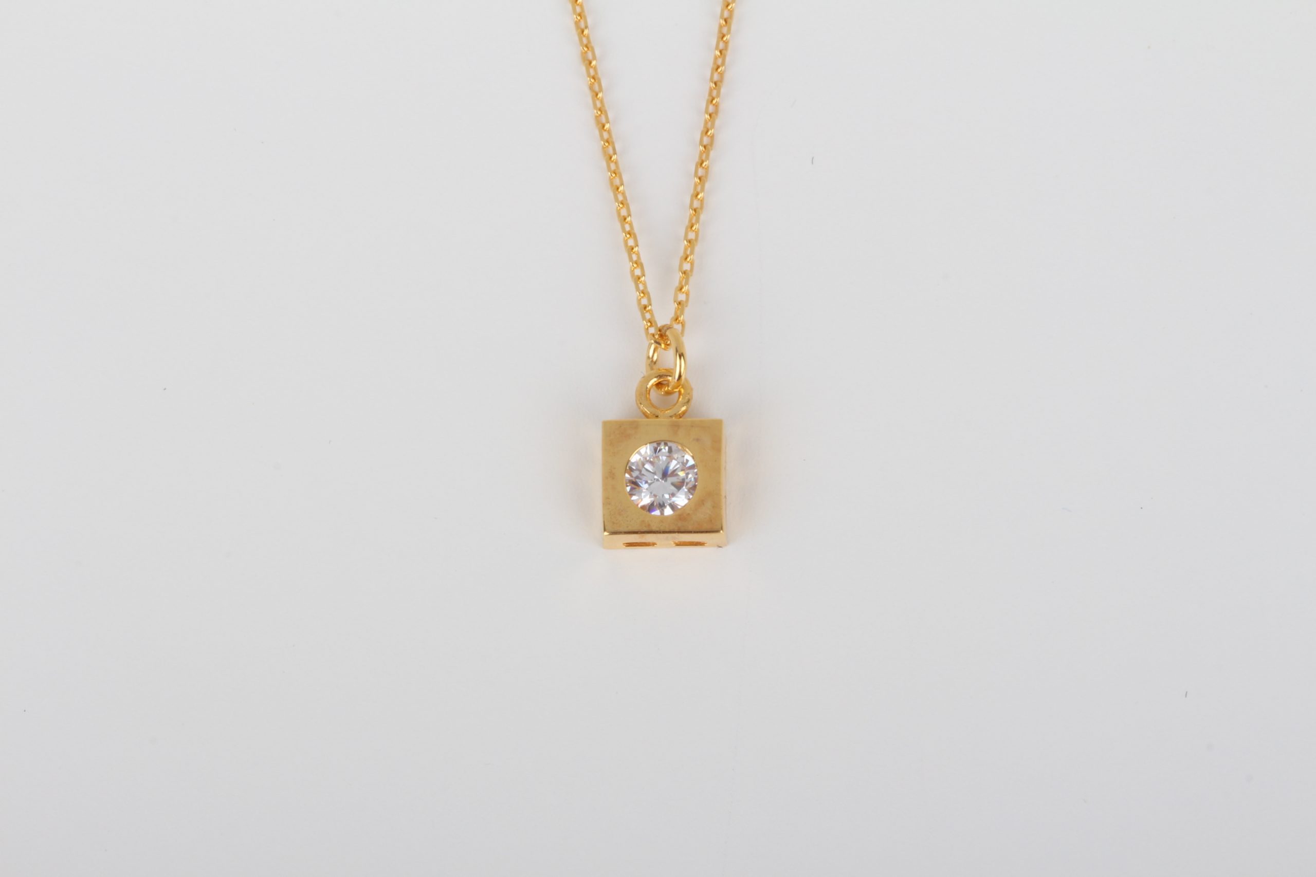 Pure 21k gold squared necklace with white zirconia
