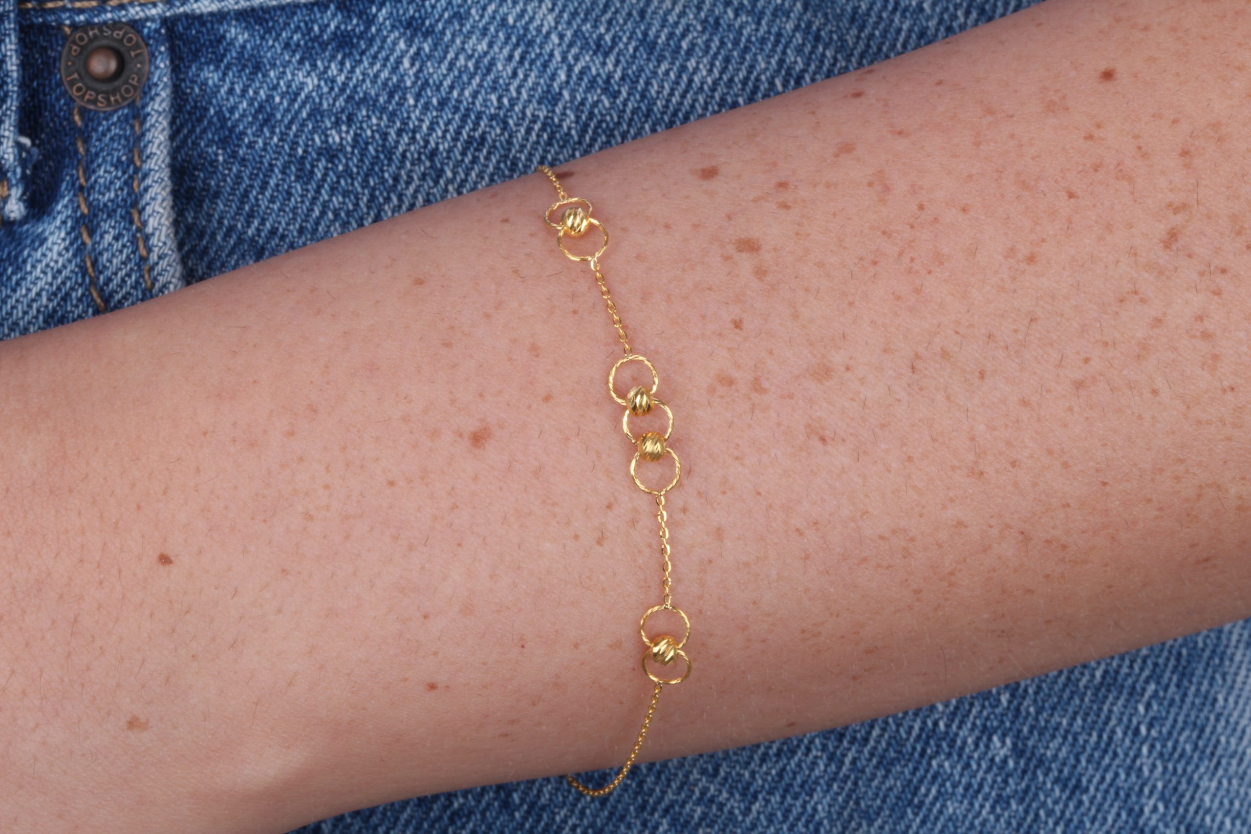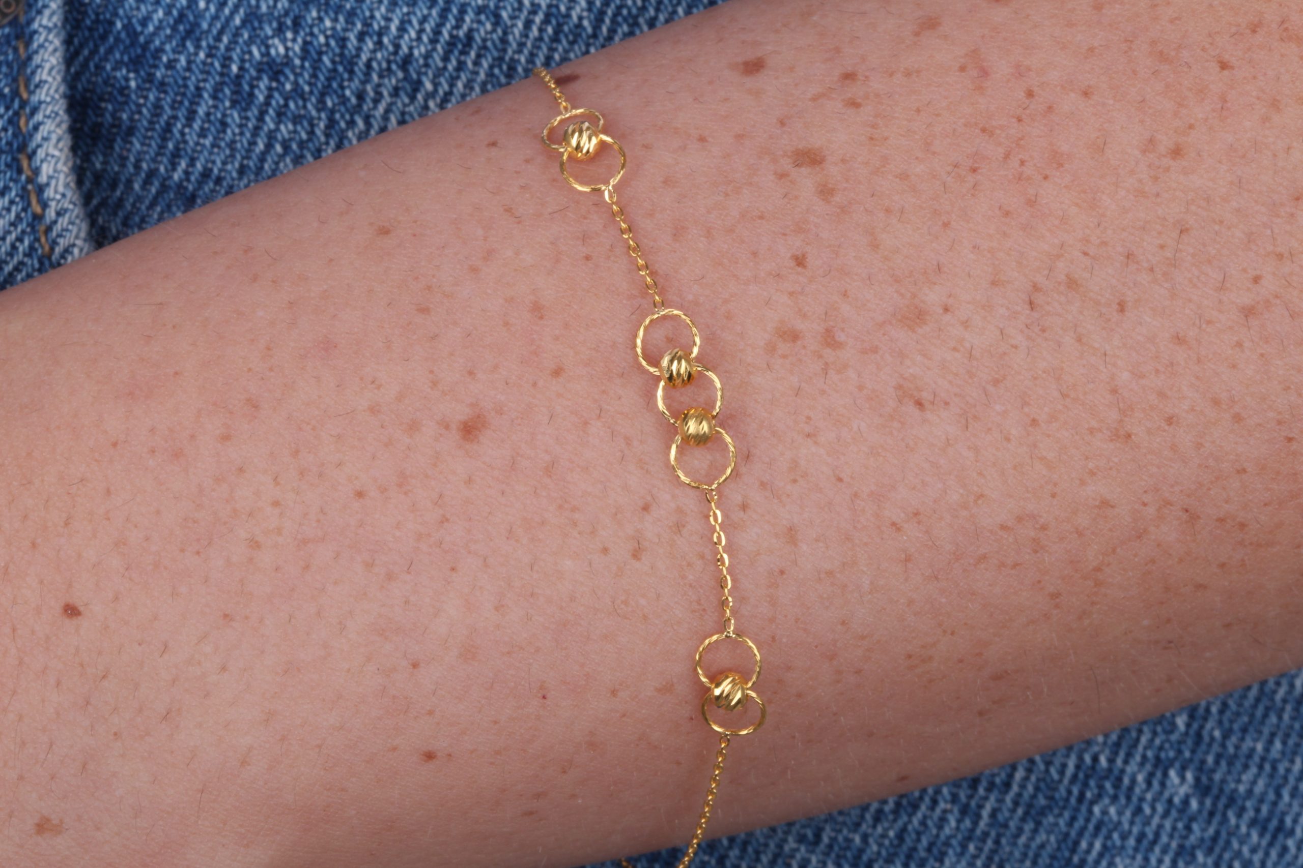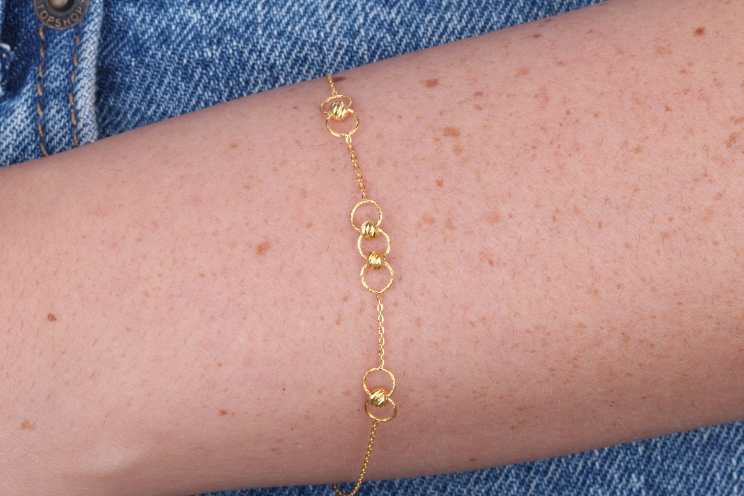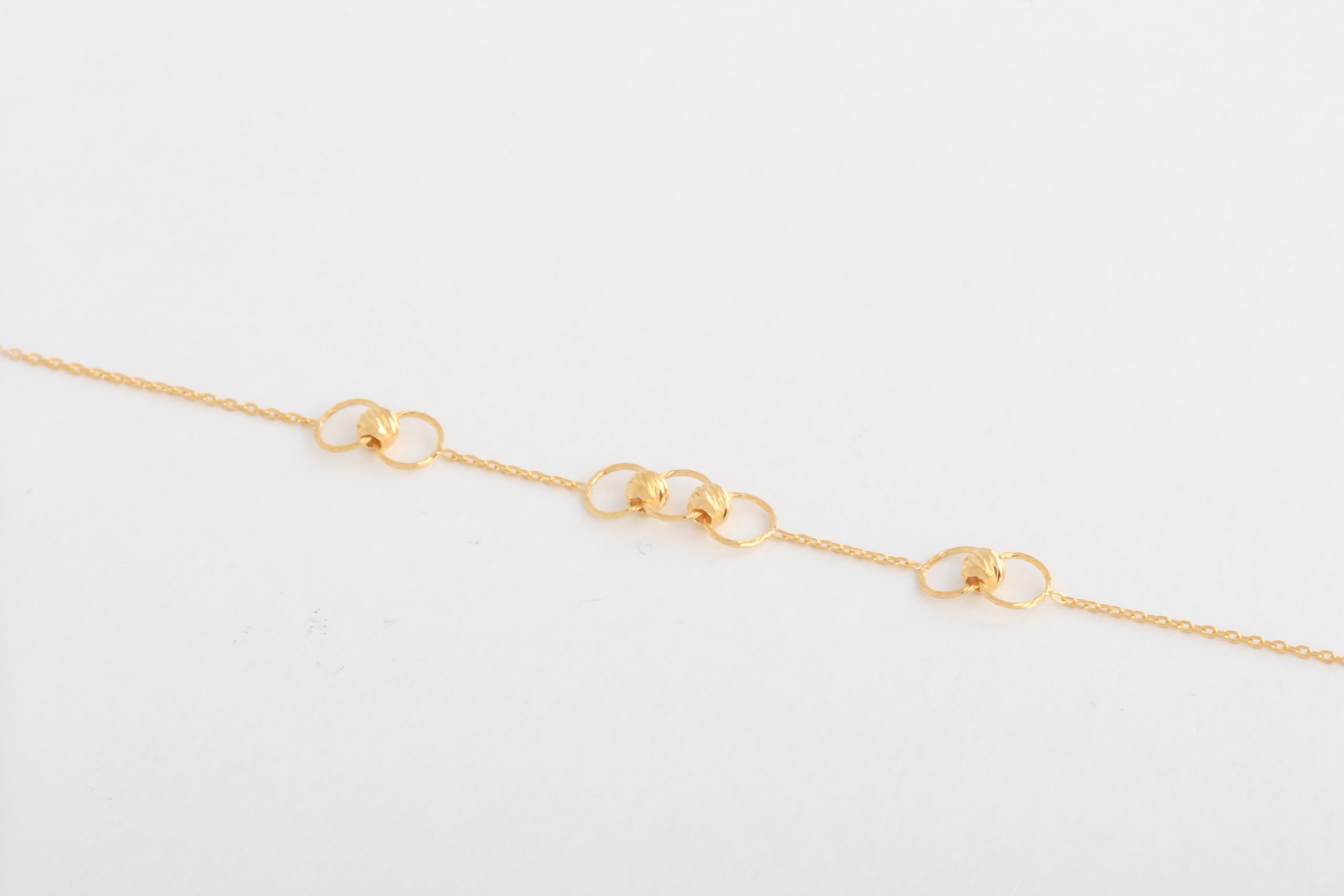 Pure 21K Gold chain bracelet with intersecting Gold loops and gold spheres.